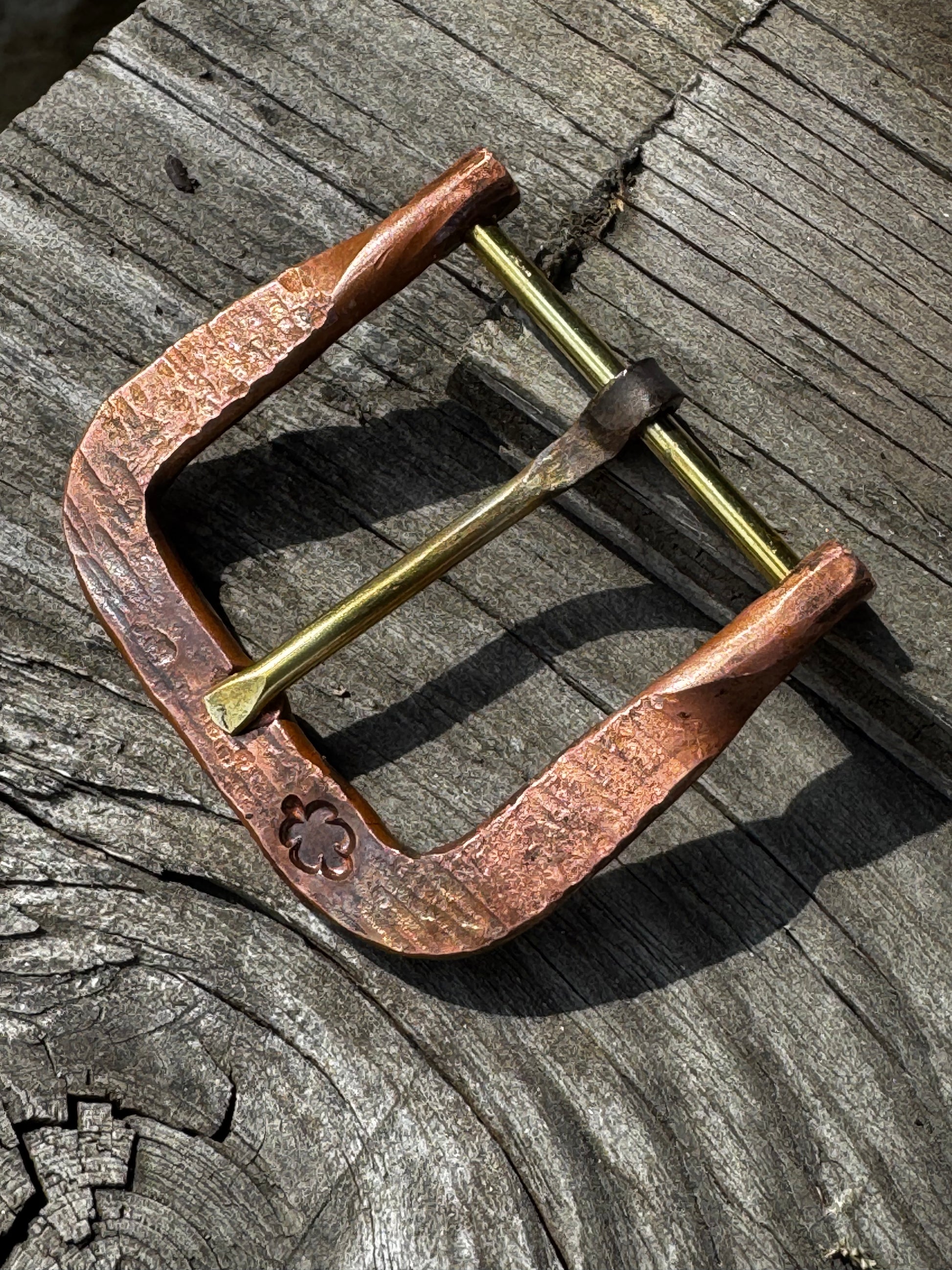 Hand-crafted from a variety of metals, these belt buckles are forged by our lead blacksmith in his modest studio. Utilizing traditional smithing techniques and tools, the buckles are sprung to life using fire, hammer, and tong. Each buckle is treated with multiple coats of Renaissance, a micro-crytalline wax polish. For steel, some protective coating will need to be reapplied at regular maintenance intervals. You can use your favorite rust inhibitor. Please note, these buckles are made to order and are hand-made; color, body, and lead times may vary.